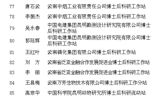 近日,云南省人力資源和社會保障廳印發了《云南省人力資源和社會保障廳關于公布第三批博士后定向培養資助人員名單的通知》(云人社發〔2016〕333號),云南大學張曉妍等100名博士后研究人員入選。其中,云南萬芳生物技術有限公司博士后科研工作分站王昌梅博士后獲得該項資助。