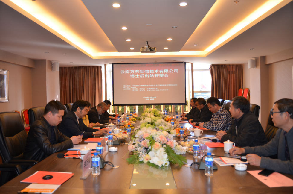 12月18日(ri),云南(nan)萬(wan)芳生物技術有限公司舉行(xing)了博士后(hou)科研工作分站博士后(hou)出站答(da)辯會(hui),會(hui)議由答(da)辯主席(xi)云南(nan)大學(xue)、云南(nan)省(sheng)微生物研究所崔曉龍研究員主持,答辯專家組成員——云(yun)南民族大學郭(guo)俊明(ming)教(jiao)授、昆明(ming)理工大學余旭亞教(jiao)授、云(yun)南省(sheng)農村科技服務中(zhong)心周自瑋研究員、云(yun)南省(sheng)輕工研究院(yuan)周力平高級工程師以及博士后合作導師張(zhang)無敵教授(shou)、黃文(wen)榮(rong)研究員參加。