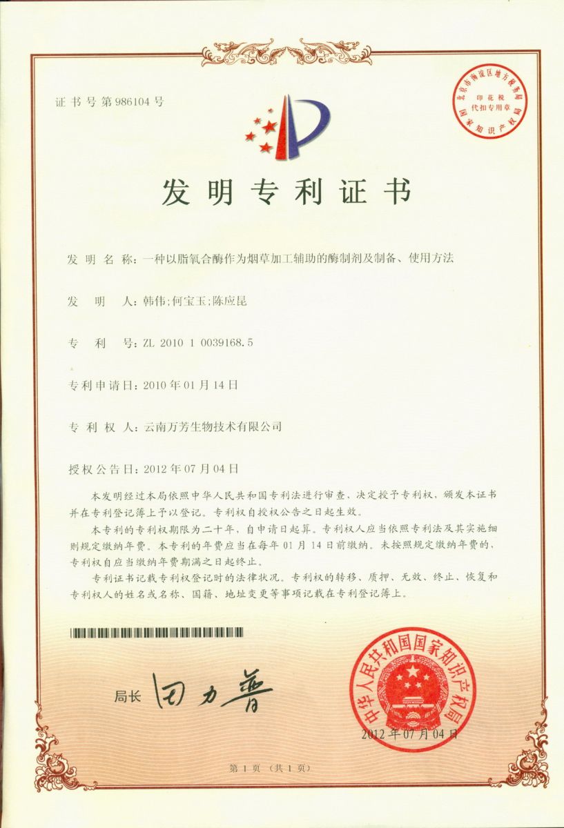 - 專利證書